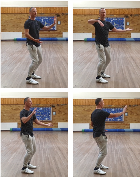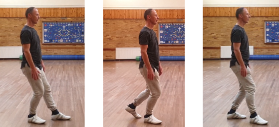 - Repeat twice more so you end up with your weight on your left foot, right foot forward
